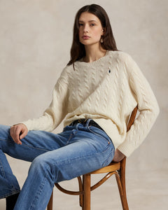 This crewneck sweater is knit with Italian wool and cashmere yarns that are spun to achieve an airy look and a soft drape. Our classic cable motif lends a textured hand to the relaxed silhouette.